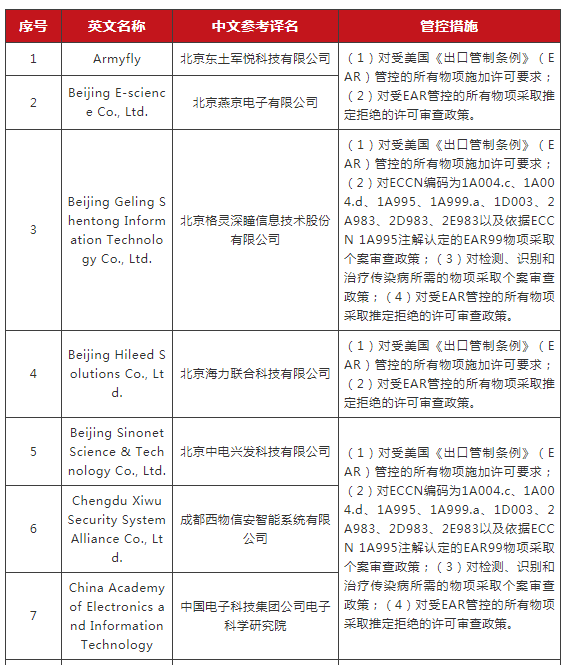 ERC認(rèn)定以下實(shí)體獲取并嘗試獲取美國原產(chǎn)物項(xiàng)以支持人民解放軍的軍事現(xiàn)代化,有違美國國家安全和外交政策利益。